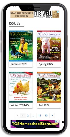 Grab the new and enhanced TOS App. It’s the hub for homeschooling. Access all The Old Schoolhouse® Magazine articles—and more—wherever you go, whenever you need them. You’ll find curriculum choices, resources, homeschool advice, help, and encouragement. Search for homeschooling topics important to you. The app content is updated weekly. The TOS App is now better than ever, and it’s FREE. Download it today!
